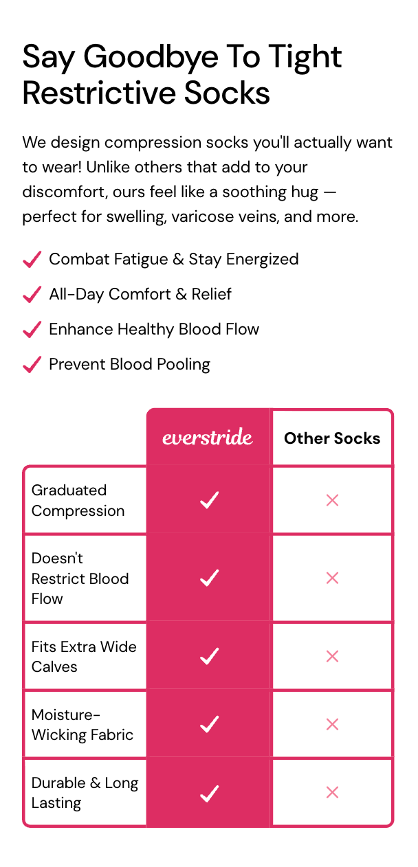 Unlike many compression socks that squeeze too hard and create discomfort, Everstride takes a different approach.